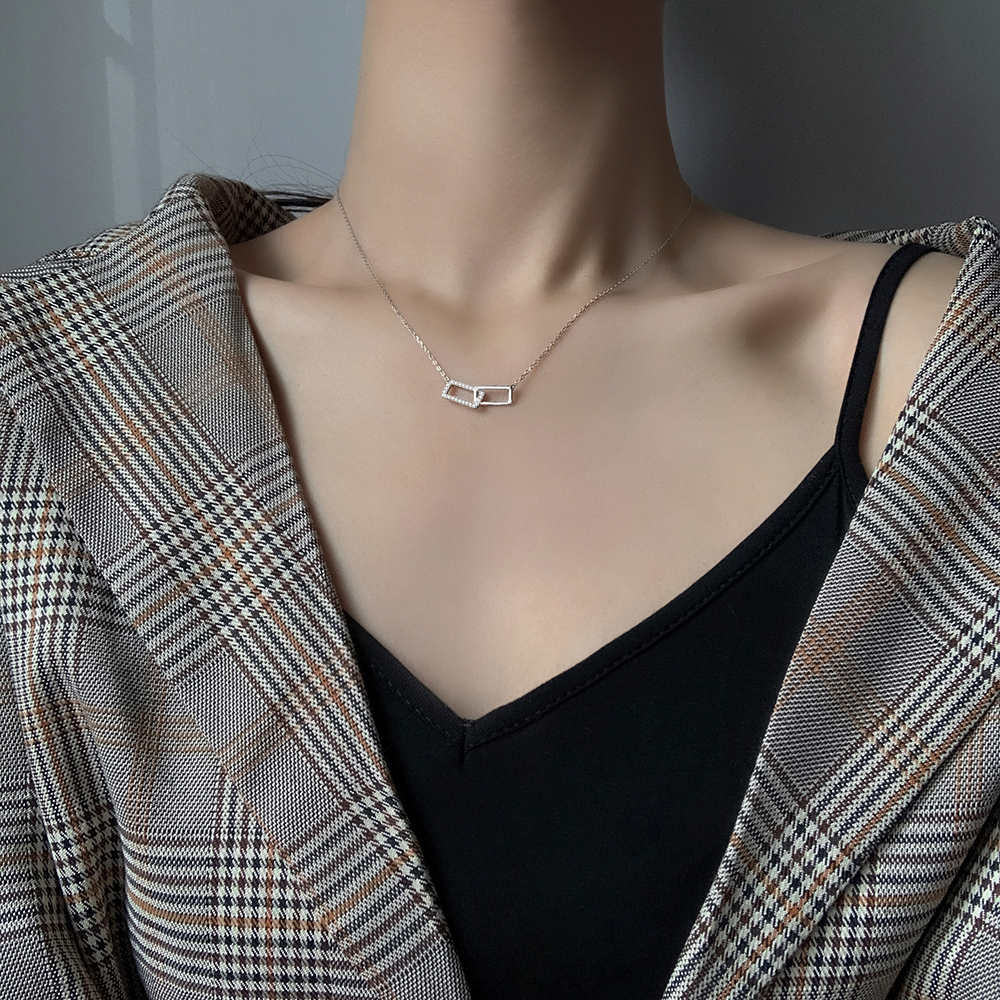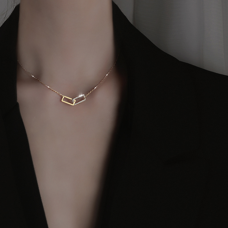 South Korea square necklace necklace woman summer 2023 new high - sensitive bone chain light luxury