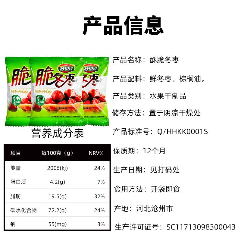 Autumn in autumn red crisp winter dates 500g hollow non-nuclear crisp red dates Yellow-free red dates Non-drying oil-free crunchy dates