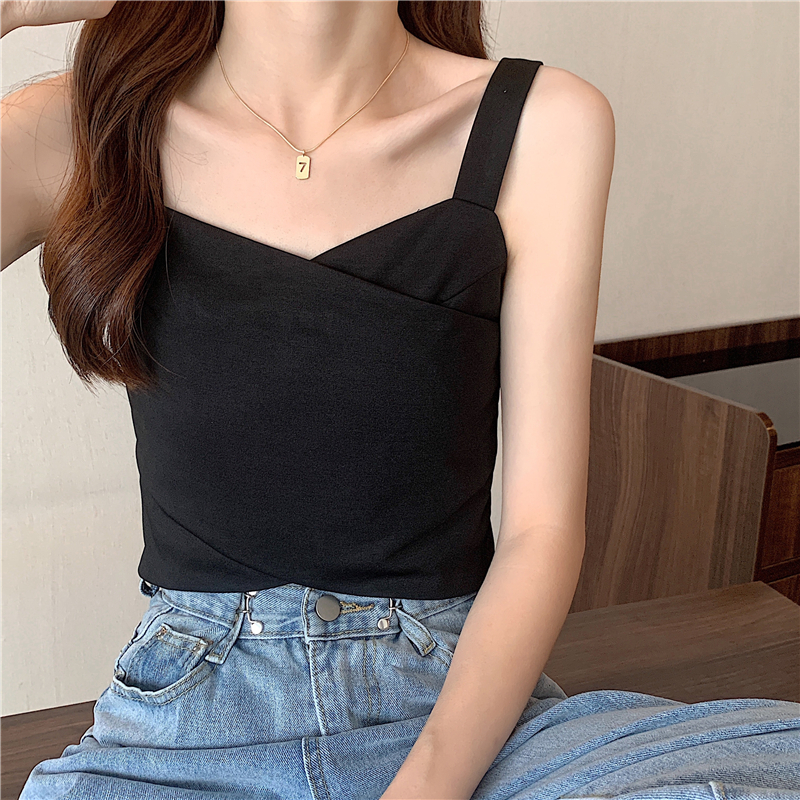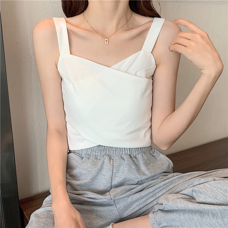 Large size fat MM white tube top camisole women's summer suit with thin V-neck outer wear bottoming short top