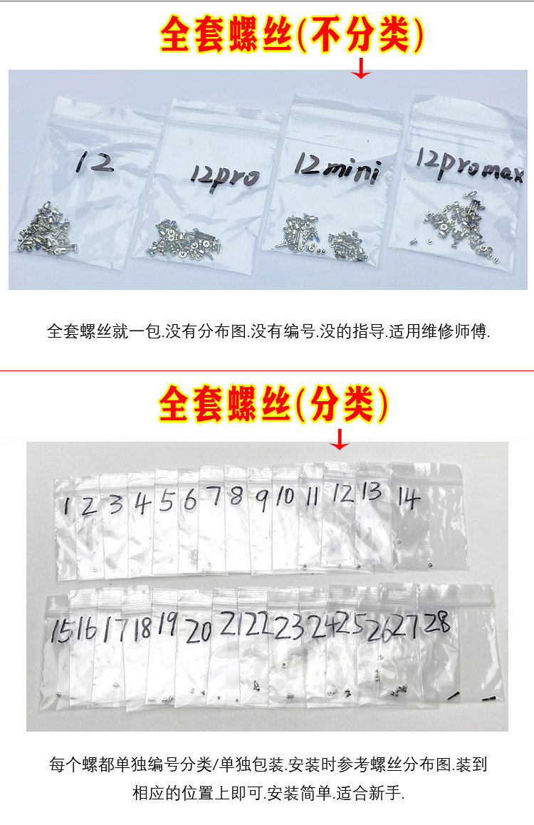 12 complete set of screws (whole package) 12 complete set of screws (classified packaging) 12pro complete set of screws (whole package) 12pro complete set of screws (classified packaging) 12proma