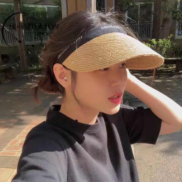 Japanese GP Summer Raffi Grass Airtop Hat Children Wide Brim Shading Elastic Straw Hat Beach Sunscreen Sun Hat