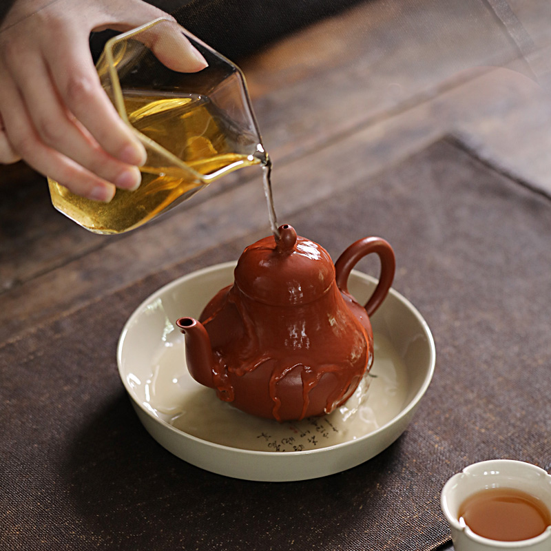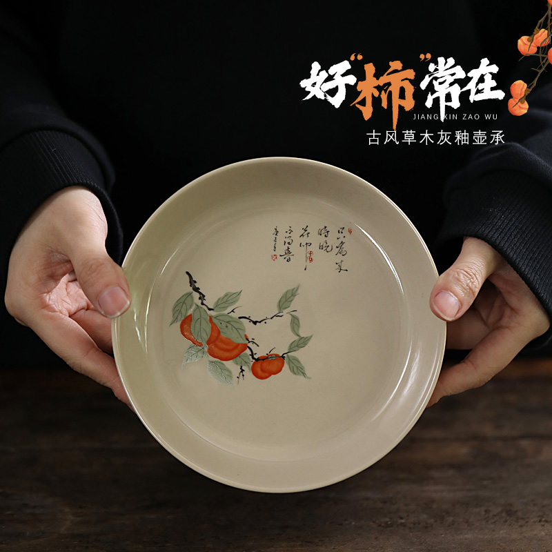 Ceramic dry teapot tray for grass gray pot household ceramic dry plate retro pot tray