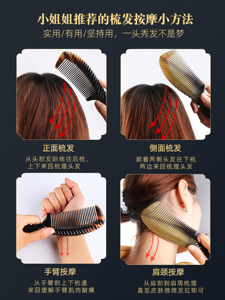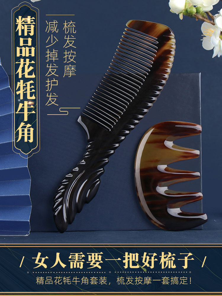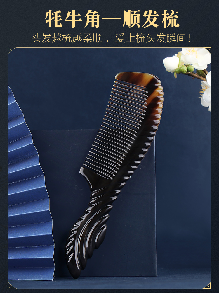 10cm Flowers Yak Horn Massage Comb (gift box essential oil cloth bag) 20cm Flower yak horn comb (gift box essential oil cloth bag) 20cm Flower yak horn comb suit (gift box essential oil