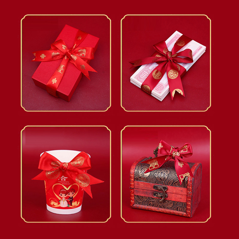 Embroidery large 1 piece 3 meters long Embroidery small 1 roll 18 meters long wine red ribbon 1 roll 22 meters long Chinese Red Reunion 1 roll 22 meters long Metal Xiaoxi 20 pieces (including pins) Chinese red (classical)
