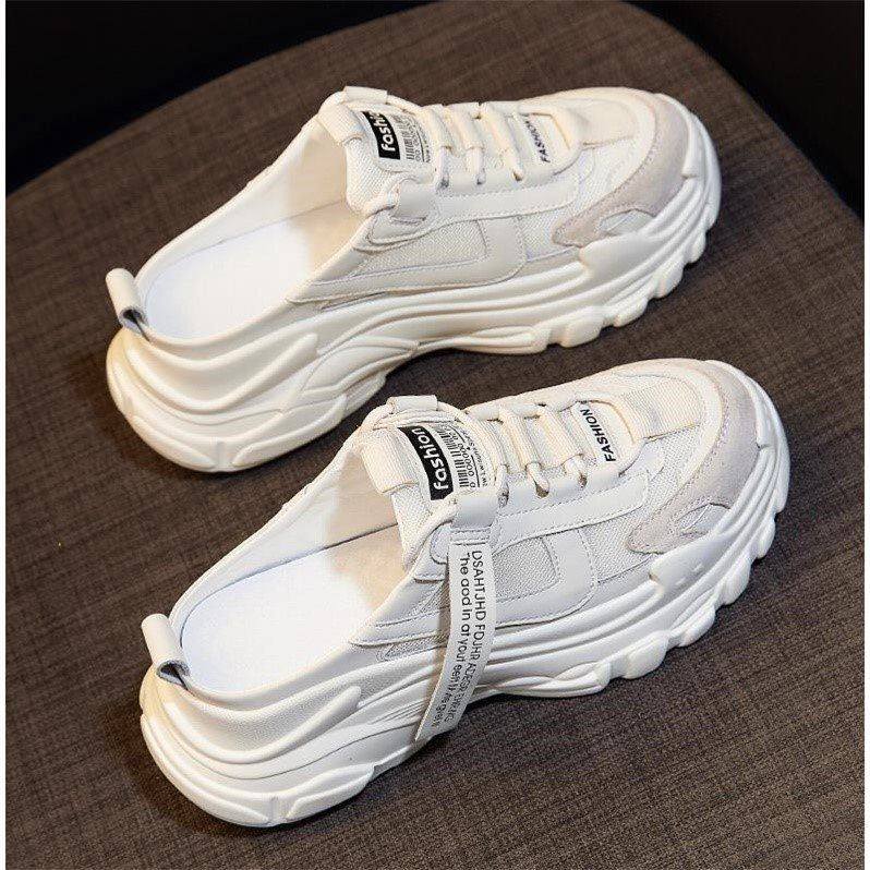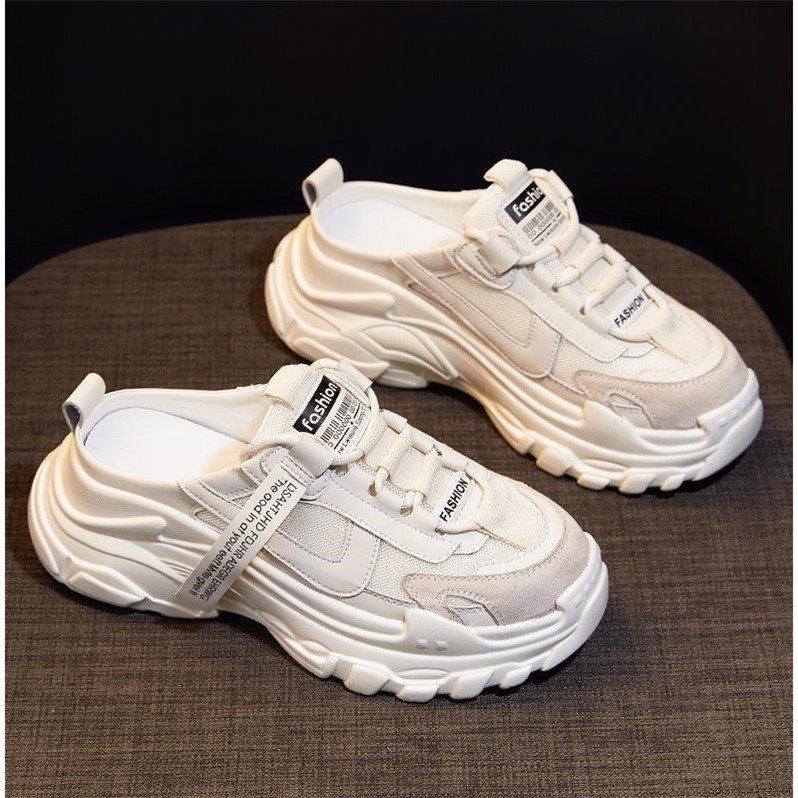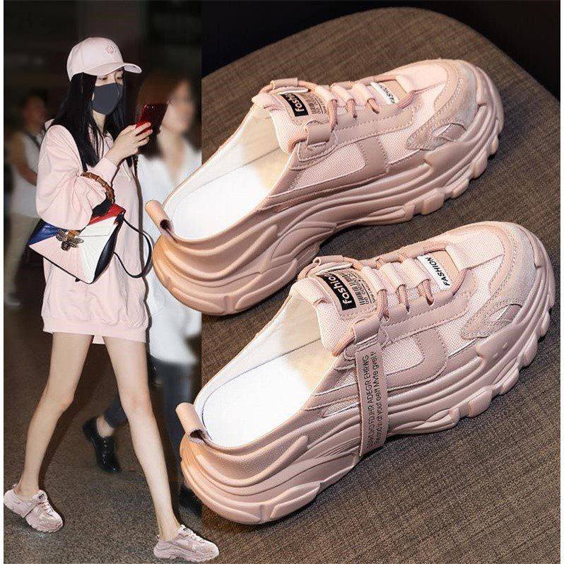Hong Kong Baotou Half slippers outside wearing Ins Chains 2022 new women's spring and summer thick bottoms Old daddy shoe sports cool tug