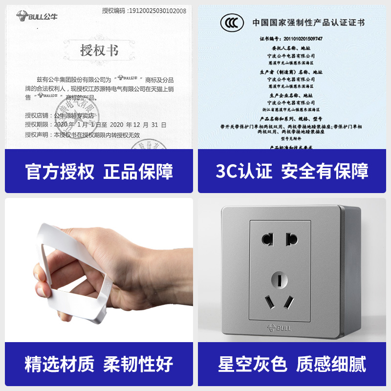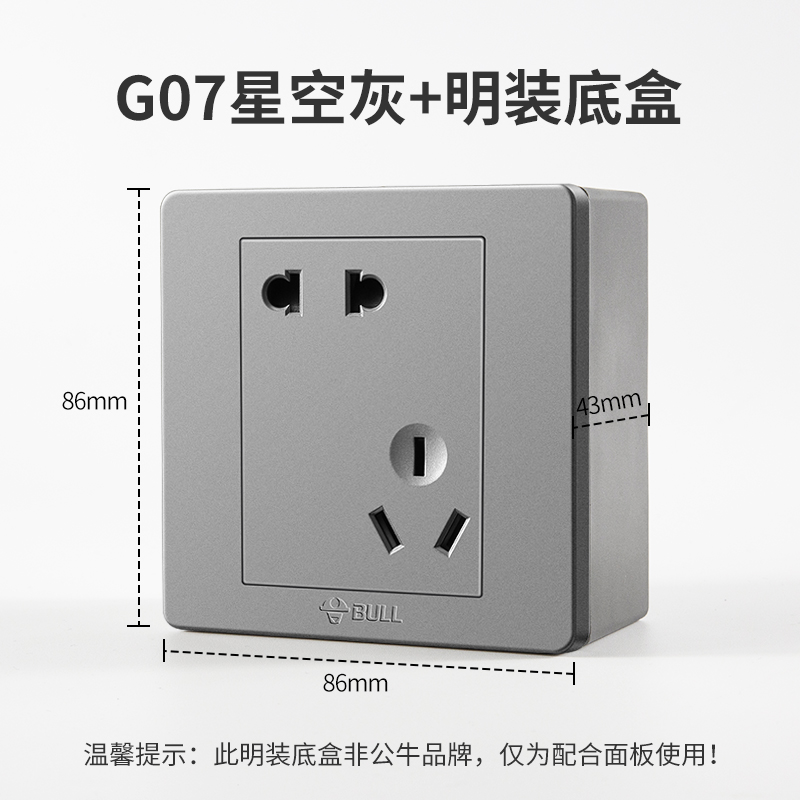 Bull bright gray panel five holes with switch socket household bright box 86 type 16a air conditioning water heater socket
