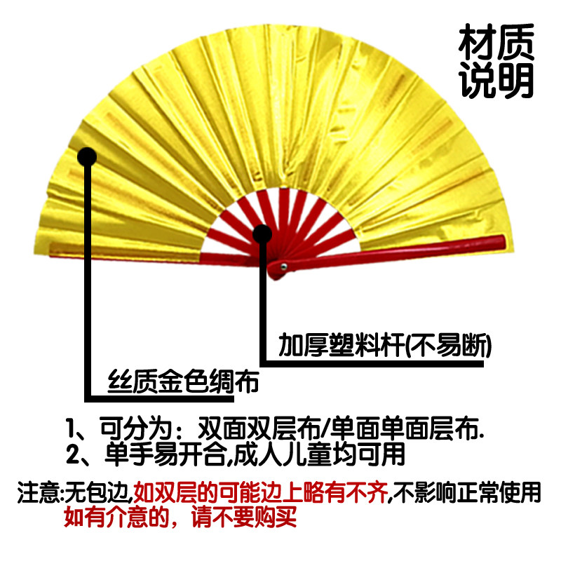 Children's dance fan exam easy to open and close folding fan bifacial red gold color Kung Fu fan says book man fan 8 inches