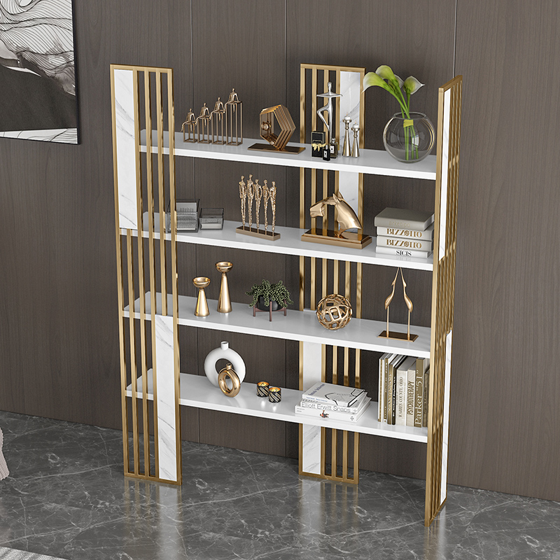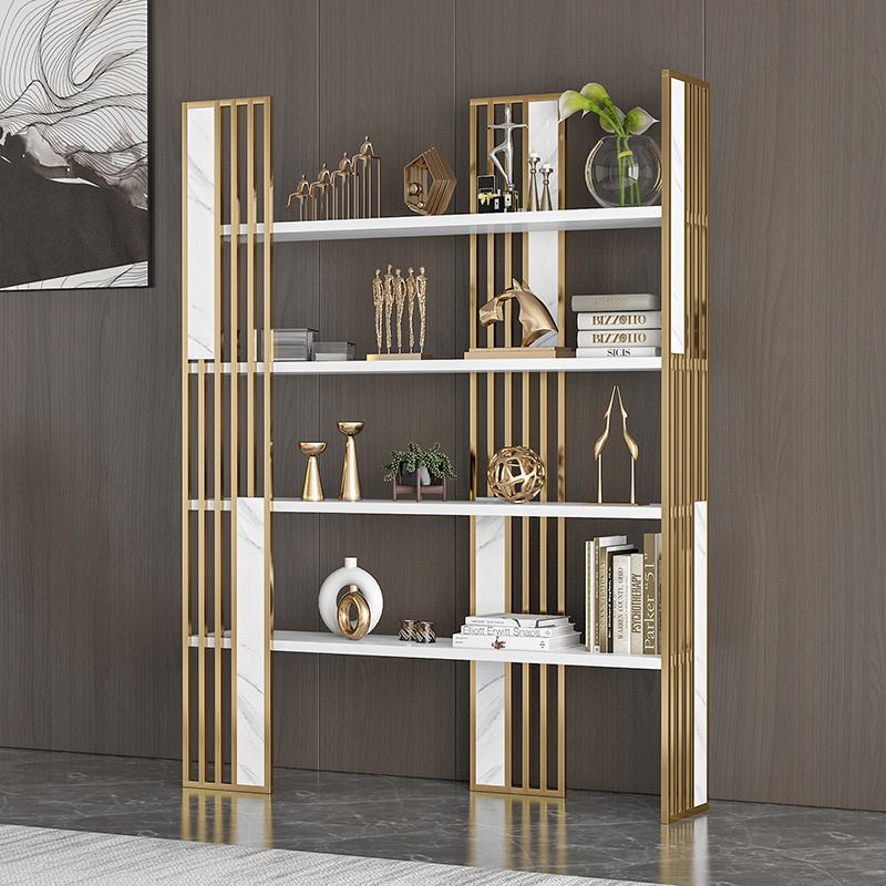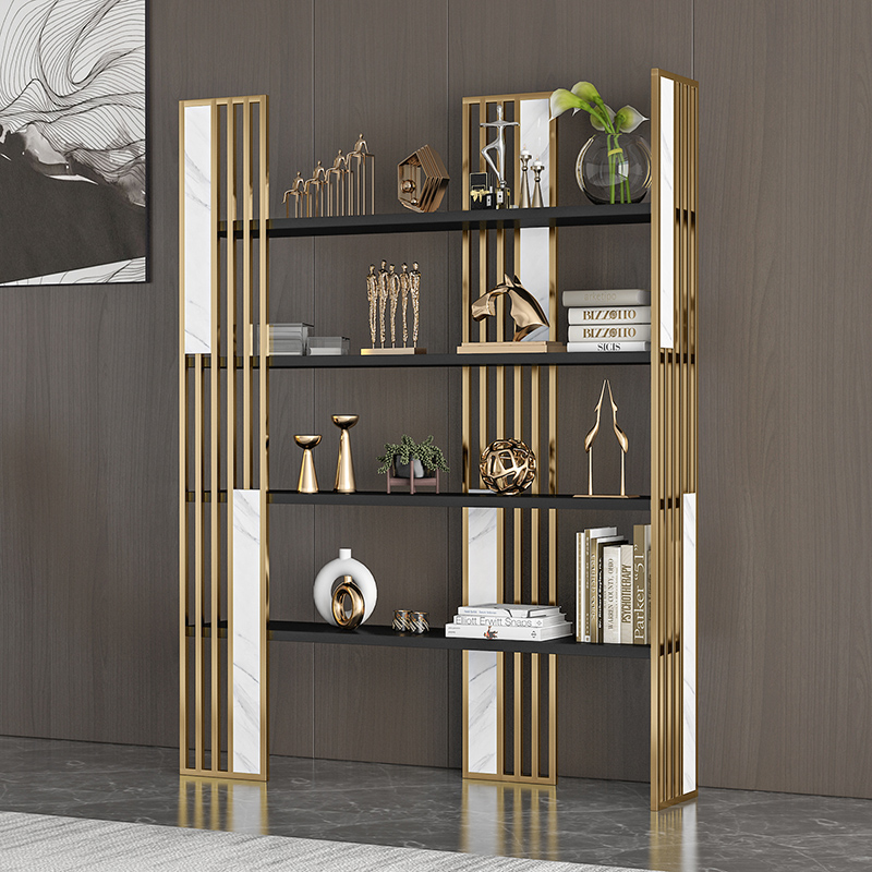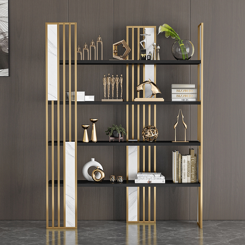 Light luxury bookshelf Floor partition shelf Metal bookcase display stand Modern office small storage decorative rack