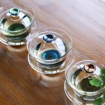 Taiwan Heji glass cover bowl Tea cup Xinghong series household heat-resistant Sansai green tea bowl single transparent tea set