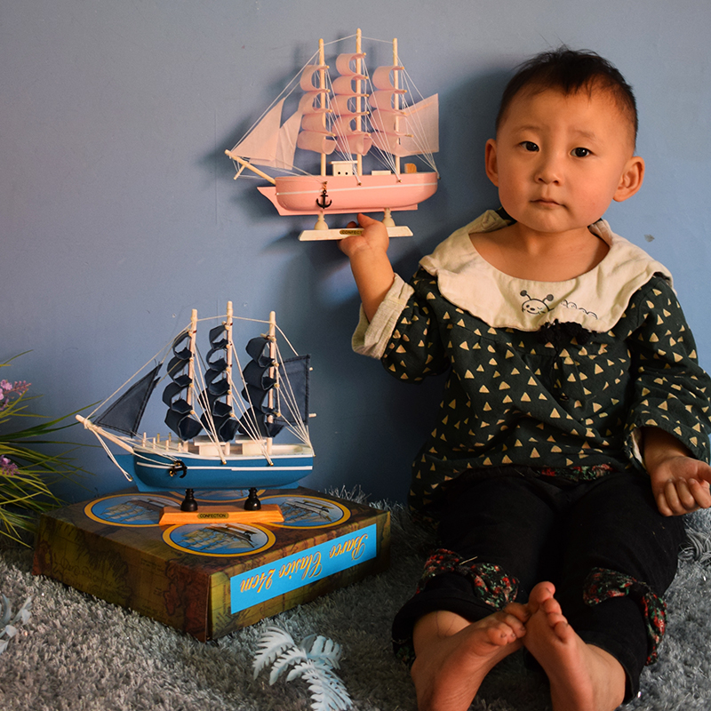 24CM blue cloth sailing vessel 24CM powder sailing vessel Blue cloth ship