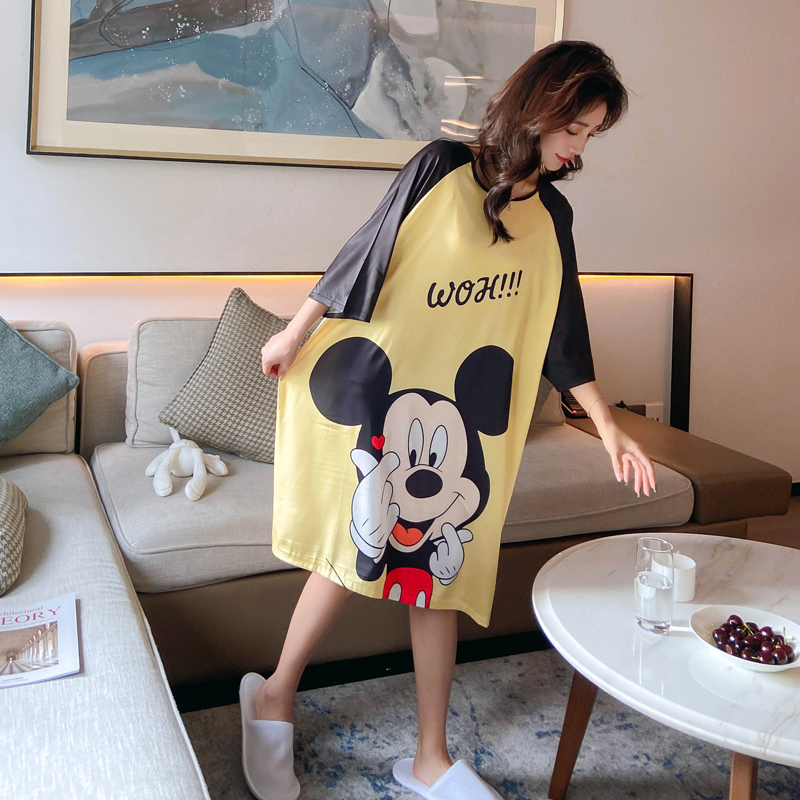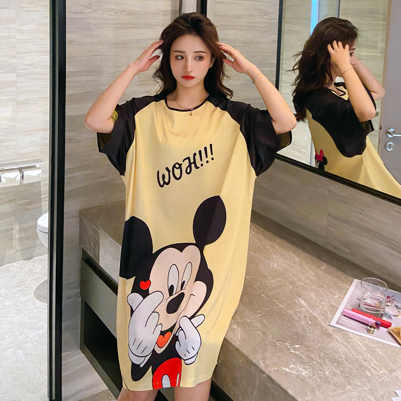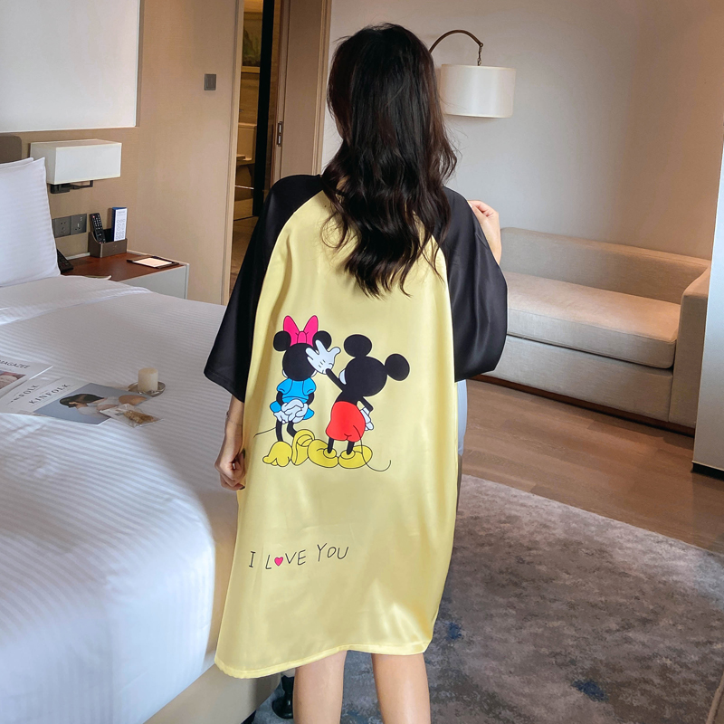 Ice silk nightdress women's summer thin section short-sleeved 2021 new net red cute sweet pajamas summer loose large size