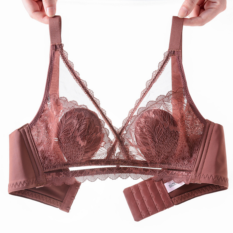 Summer no steel ring thin underwear women's big breasts show small ultra-thin breasts anti-sagging rabbit ears lace cute cover
