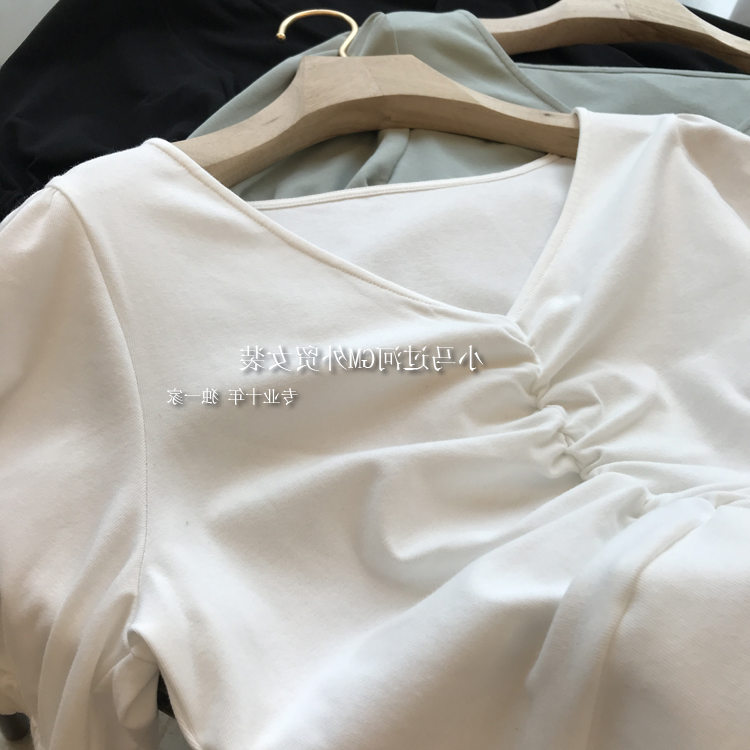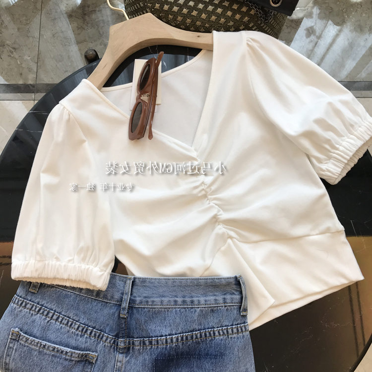 Brand Fold Discount Store Mall Withdrawal Teller Women's Tail Goods Clear Cabin Temperament V Collar Front Cramps Short And Thin Blouses Women T-Shirts