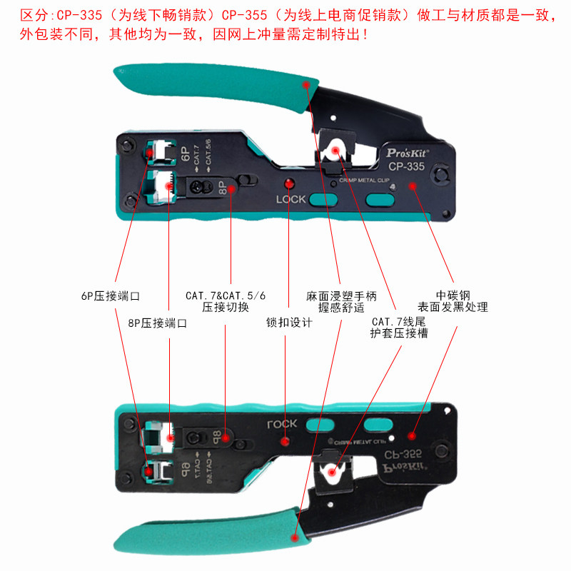 Taiwan Baoworkers Seven Type of Net Route Crimping Pliers Suit CAT7 Network Route 6P8P Crystal Head crimping pliers with dovetail clip CP-335