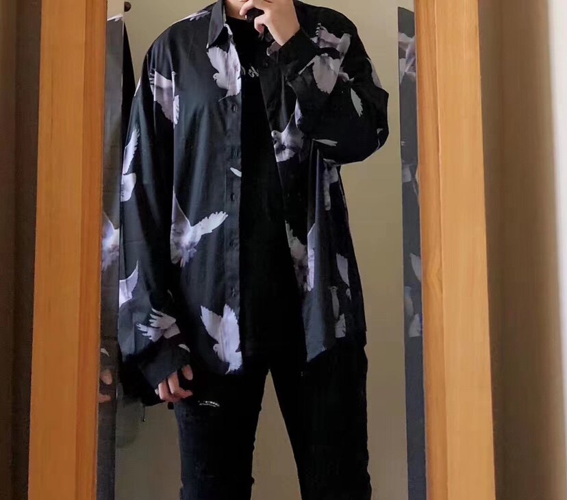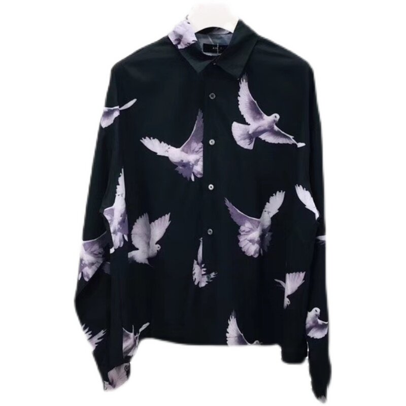Tide brand Amiri spring and autumn new European and American high street print peace pigeon men's and women's long-sleeved cotton shirt