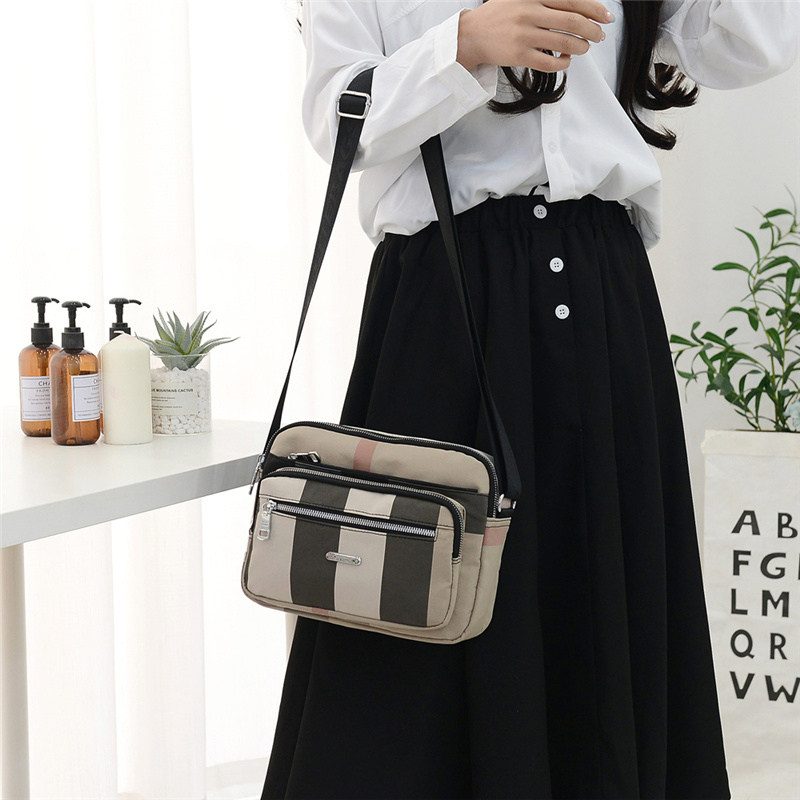 Oxford cloth bag 2021 new striped plaid bag multi-compartment middle-aged mother small cloth bag women's bag canvas messenger bag