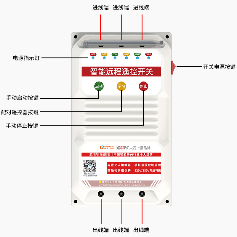 Yaosheng intelligent three-phase 380V water pump remote control switch wireless 220V high power phaseless protection motor controller