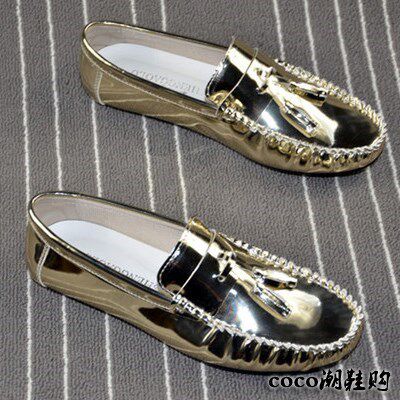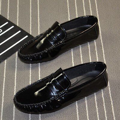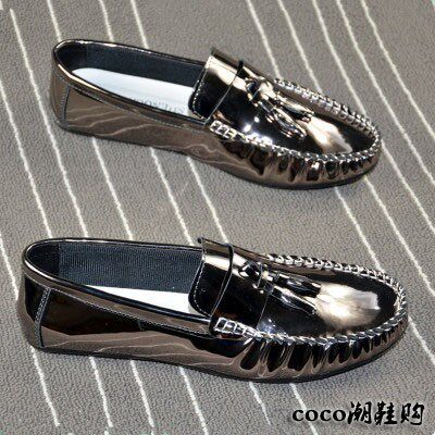 Hong Kong 2022 spring and summer new lacquer leather bean bean shoes casual men's shoes streaming Suone foot pedal driving shoes Inron sloth shoes-Taobao