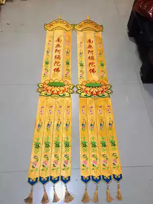Buddhist Buddha flag hanging flag chrysanthemum long flag jacquard cloth Meilan chrysanthemum bamboo decoration embroidery Temple Buddhist equipment supplies