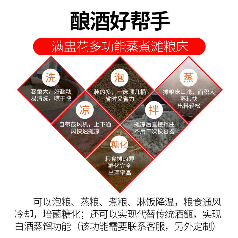 Full flush with stainless steel multifunction steamed rice mixed with Saccharine Brewing Stall Cool Bed Small Liquor Distillers Steamed Wine