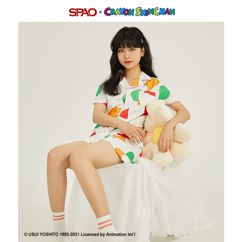 SPAO Crayon Xiaoxin joint pajamas set summer new fashion loose short-sleeved SPPPB25DA2