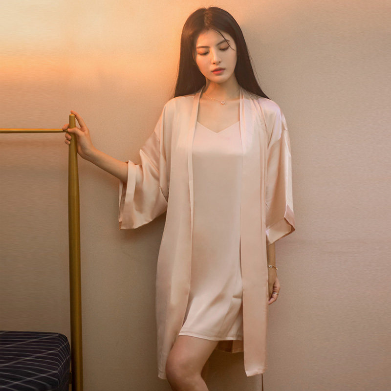 Sleepwear Girl Spring Summer Sexy Thin style Home Emulated Silk Morning Gown Ice Silk Harnesses Sleeping Skirts Loose Sleepwear and two sets