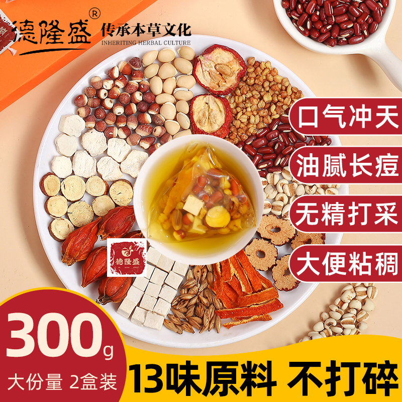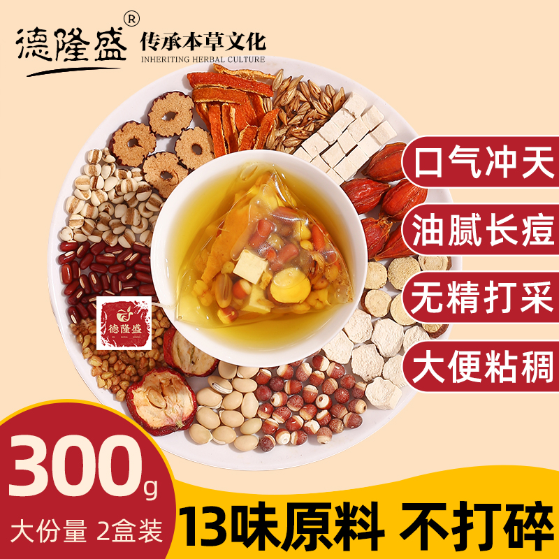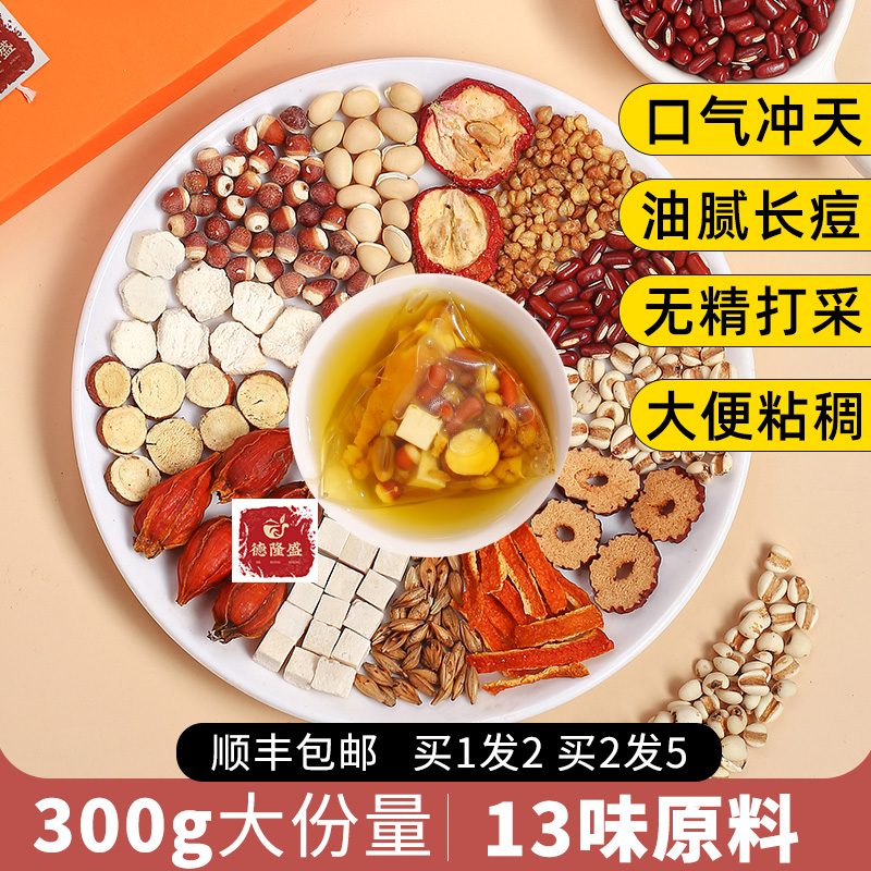 Red Bean, Barley, Gorgon, Poria, Barley, Tartary Buckwheat, Lentils, Red Dates, Yam, Licorice, Poria, Hawthorn, Chenpi, Gardenia