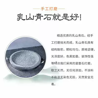 Double ear round barbecue stone plate shallow baking tray slate bean curd plate shallow flat bottom stone pot commercial special resistant to high temperature and high temperature resistance