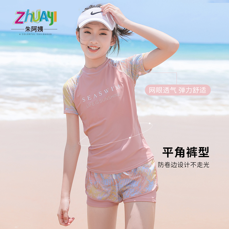 Girls swimsuit conservative quick dry split children swimsuit swimming trunks big children summer cover belly appear thin hot spring wear
