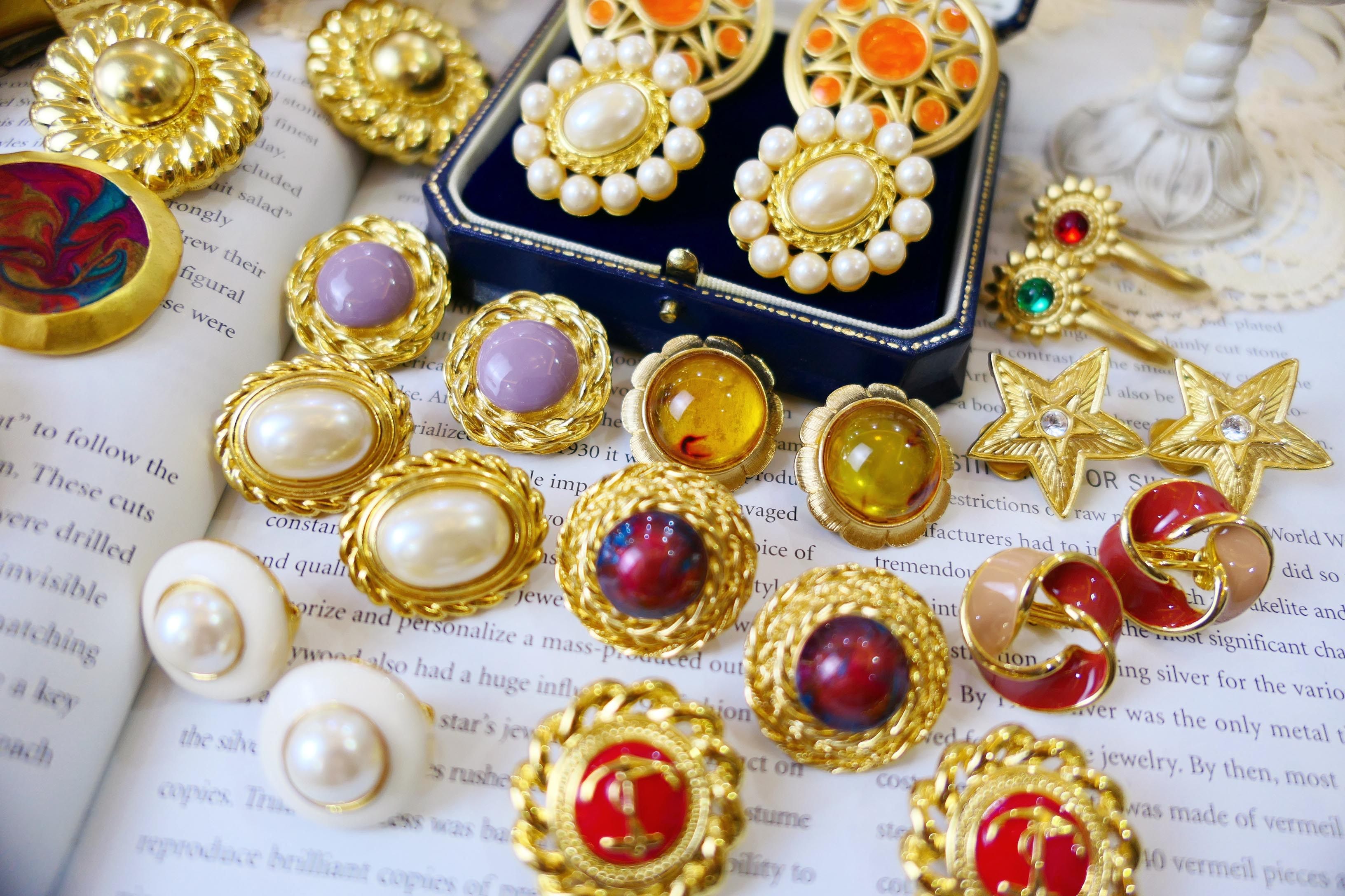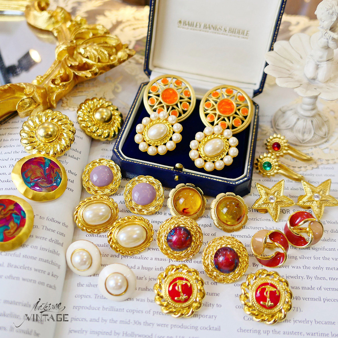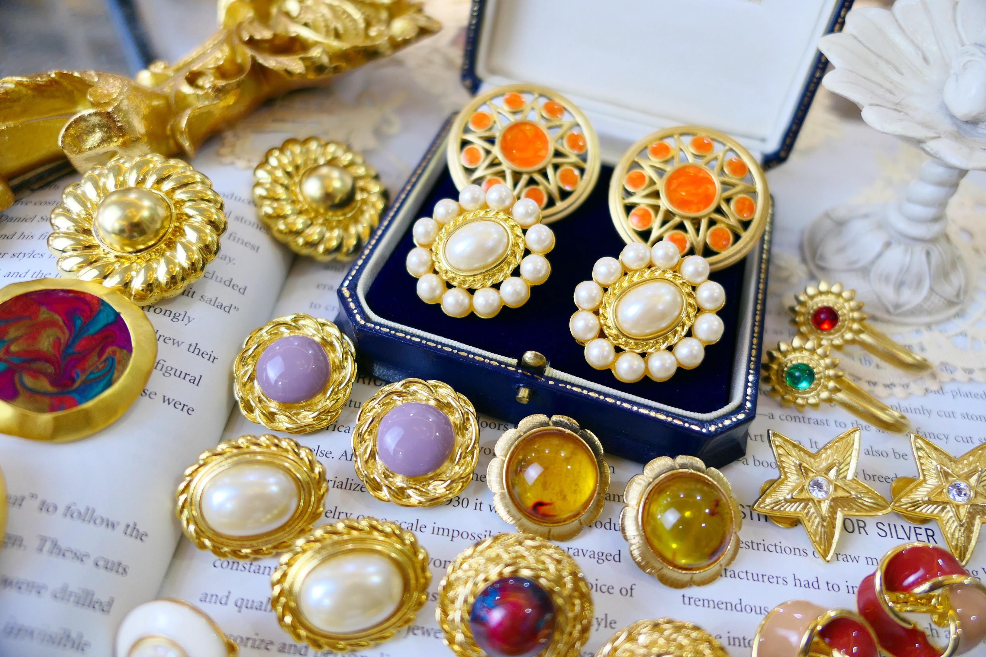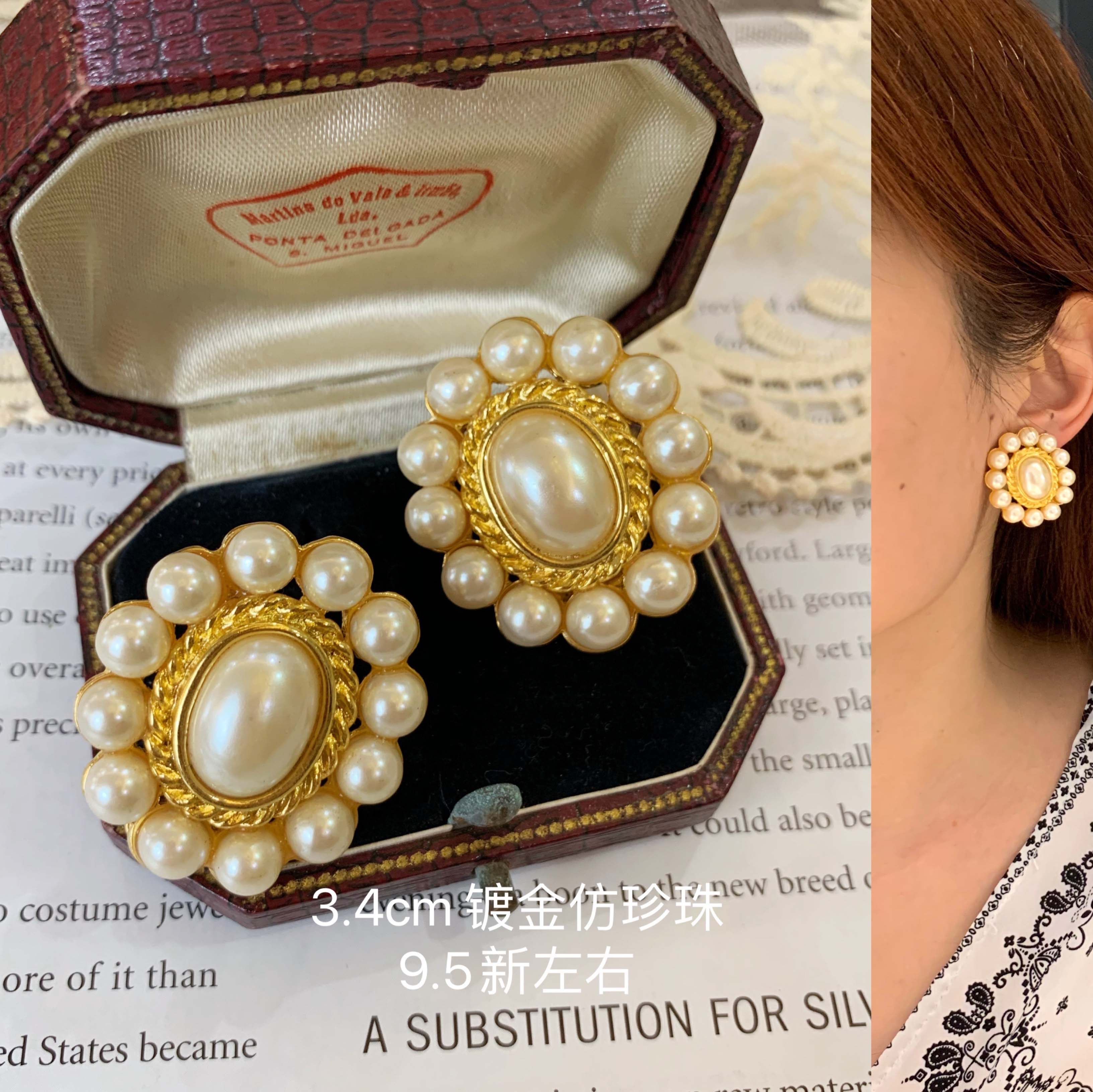 Vintage exotic jewelry gold-plated enamel pearl gorgeous elegant court style retro 80 years niche ear clip