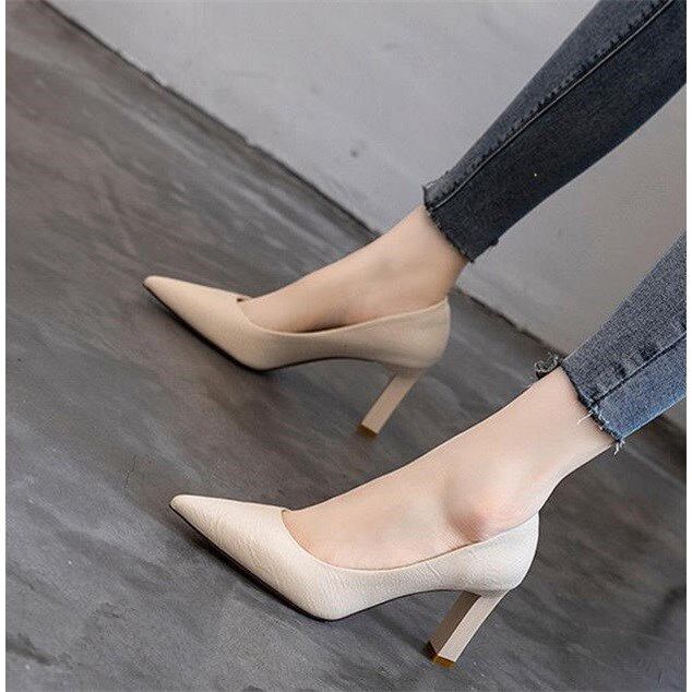 High Heel Shoes 2021 Fall New Pointed Coarse Heel Single Shoe Woman Soft Leather Heel Career Positive Working Women Shoes