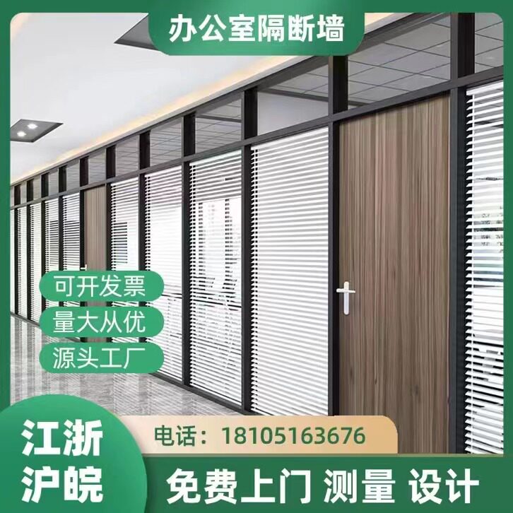 Nanjing office wooden door partition wall aluminum alloy profile frosted transparent soundproof louver single double-layer tempered glass