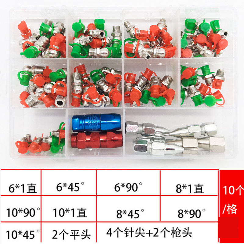 Set of boxed straight curved butter nozzle universal oil injection set grease gun accessories Tsui head pointed flat head M6M8M10
