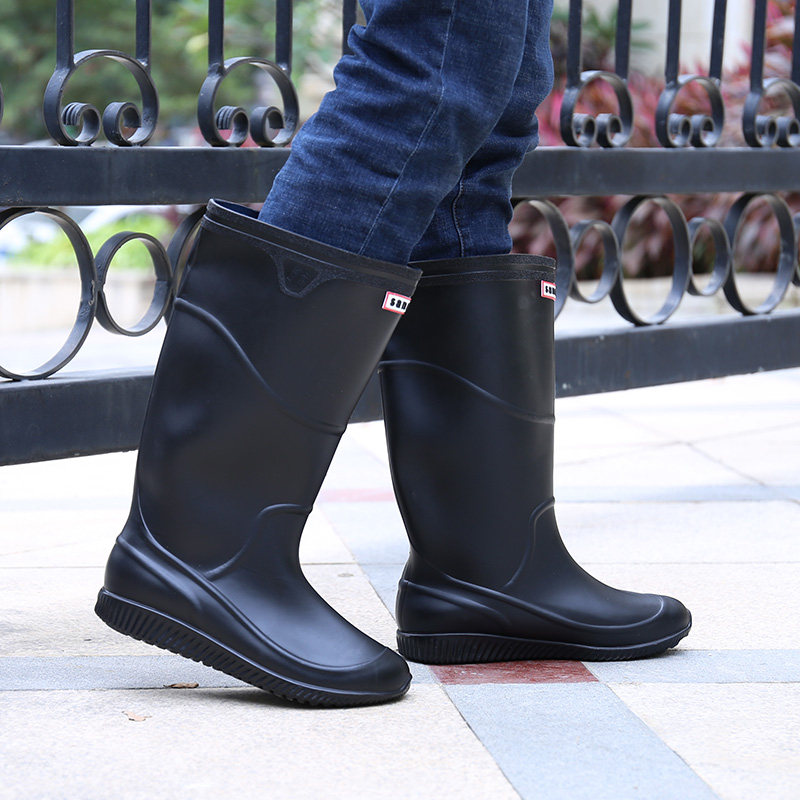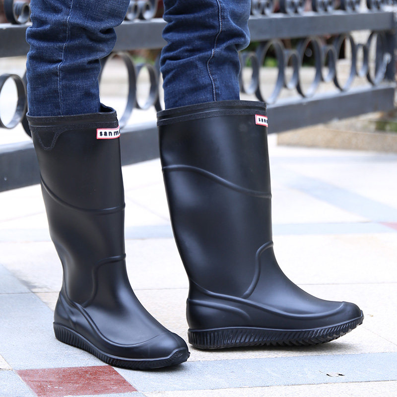 Tall rain boots men's long rain boots plus velvet mid-tube water shoes kitchen work water boots construction site acid-base waterproof rubber shoes