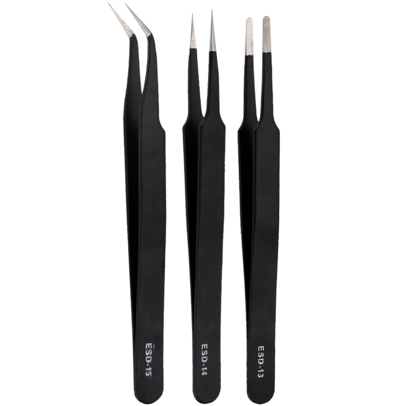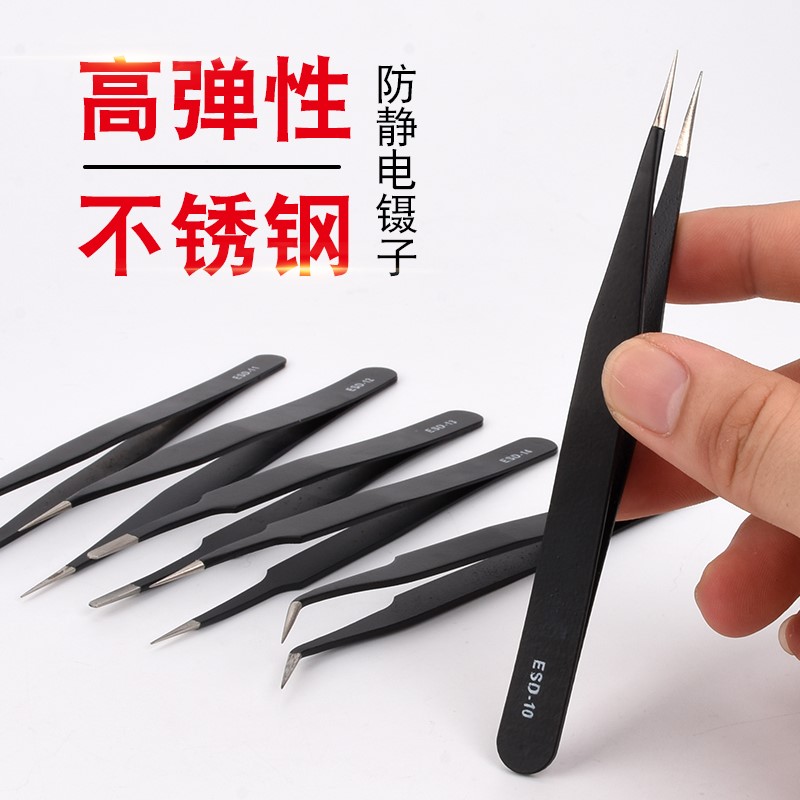 High precision repair antistatic tweezers stainless steel round head pointed repair elbow clamping tool clips