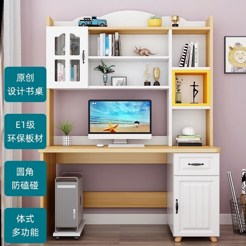 Book desk integrated whole wall simple modern bookcase plus desk combined desk desk one student table