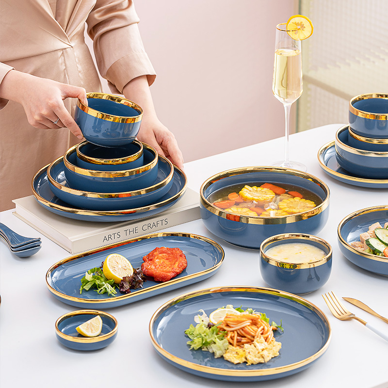 Light Extravagant Bowl DISH SUIT HOME BOWL SINGLE CERAMIC CUTLERY CREATIVE BOWL TRAY BOWL CHOPSTICKS COMBINED NORDIC PLATE BIG NUMBER