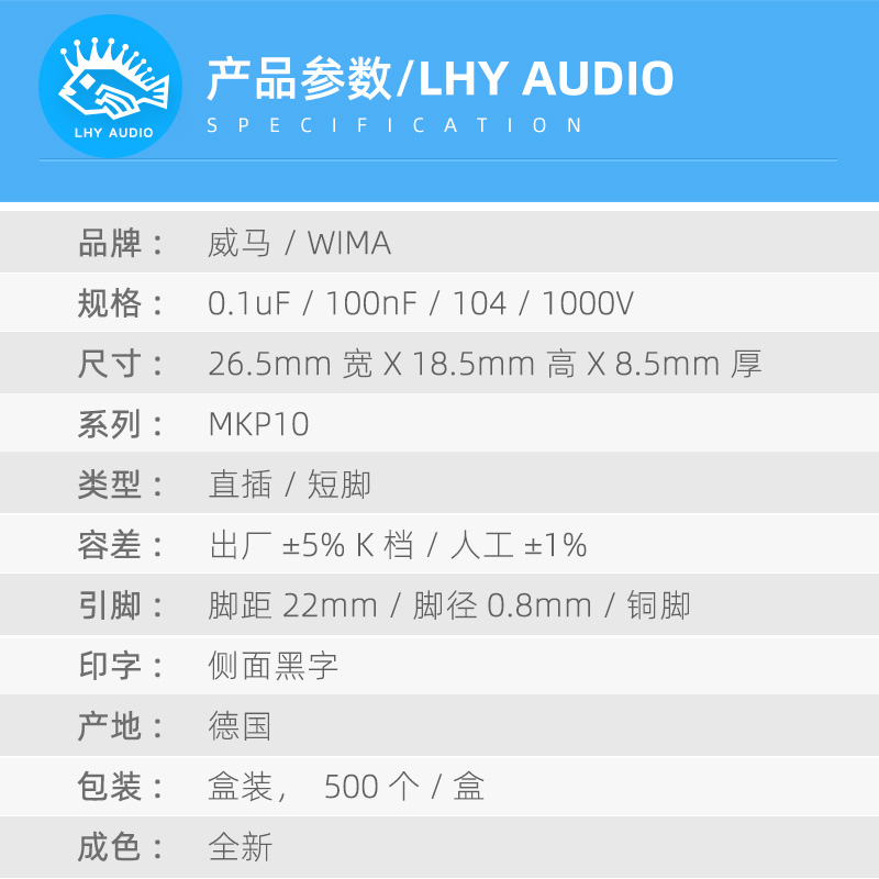 0.1uF 104 100n 1000V MKP10 German WIMA Audio Stepless Coupling Film Capacitor