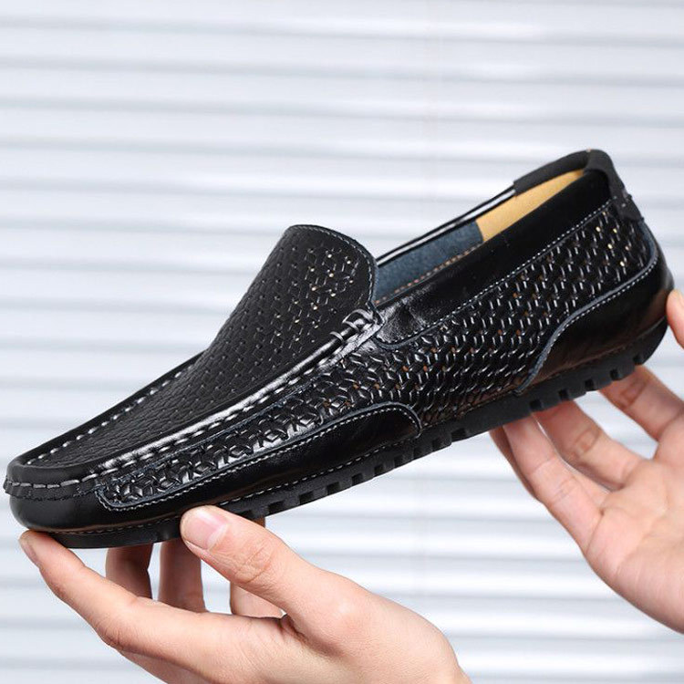 Brand high-end quality 2021 summer new breathable leather peas shoes casual hollow men's trendy loafers