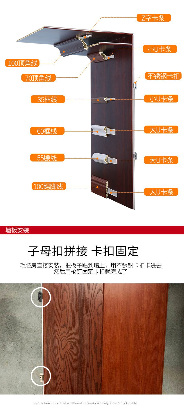 Bamboo and wood fiber integrated wall panel matching line trimming line Yin angle line one meter quotation