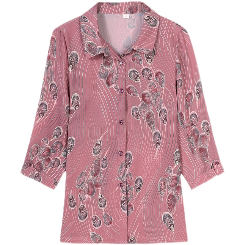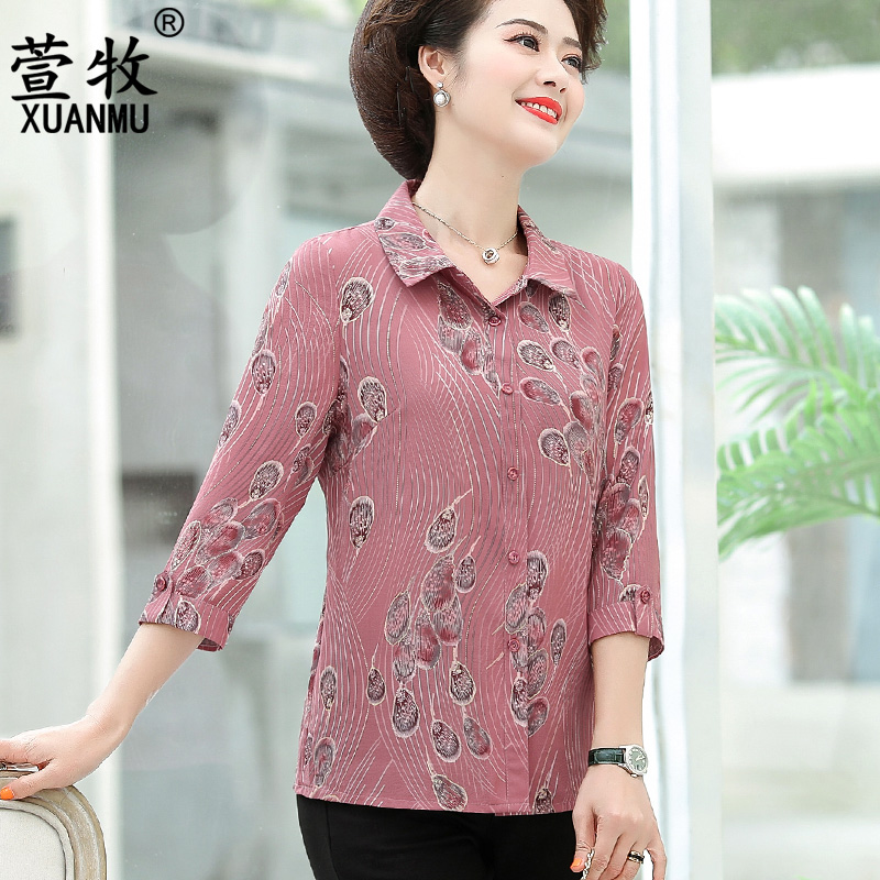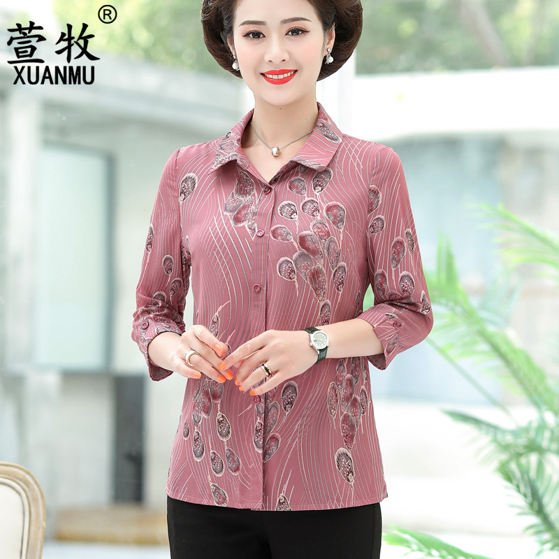 Middle - aged seniors spring sniffing shirts 40 - 50 year old mother wears a seven - sleeve shirt