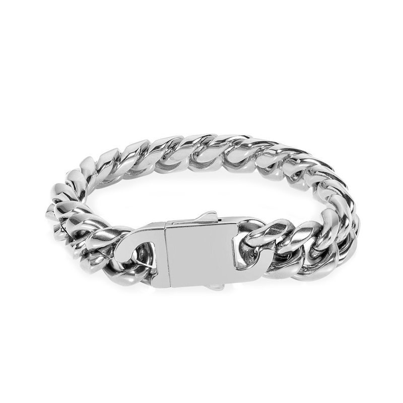 (Official)CHALAVRODW Cuban bracelet male hip hop couple bracelet female tide silver