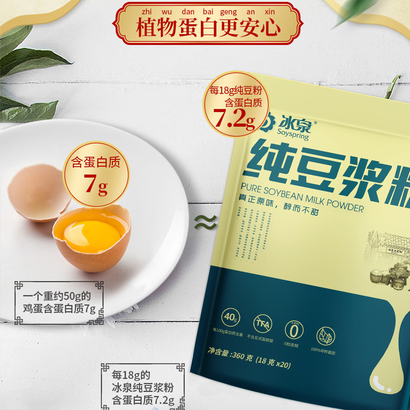Ice Springs Pure Soy Milk Powder Raw Taste Non Genetically Modified Nutritional Breakfast Meal Bean Milk Powder Mcsheet Independent Packaging 360g-Taobao