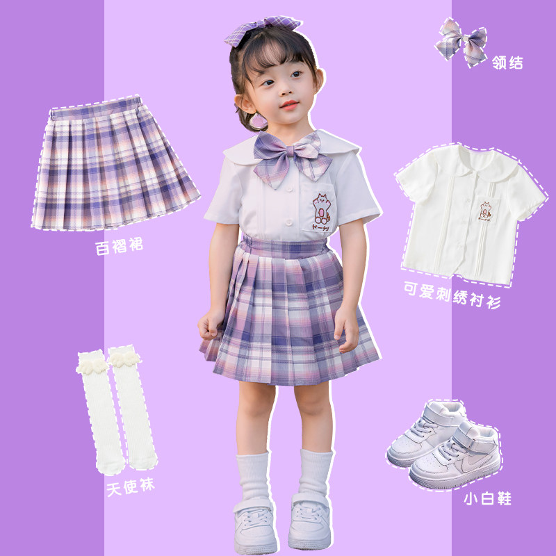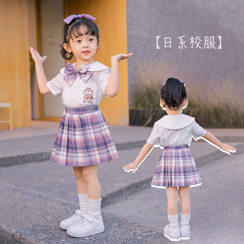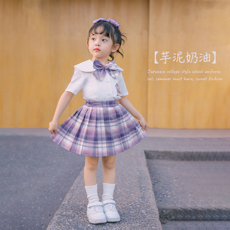 Children's JK uniform suit summer skirt baby college style children's full set of girls' summer school uniform summer class service