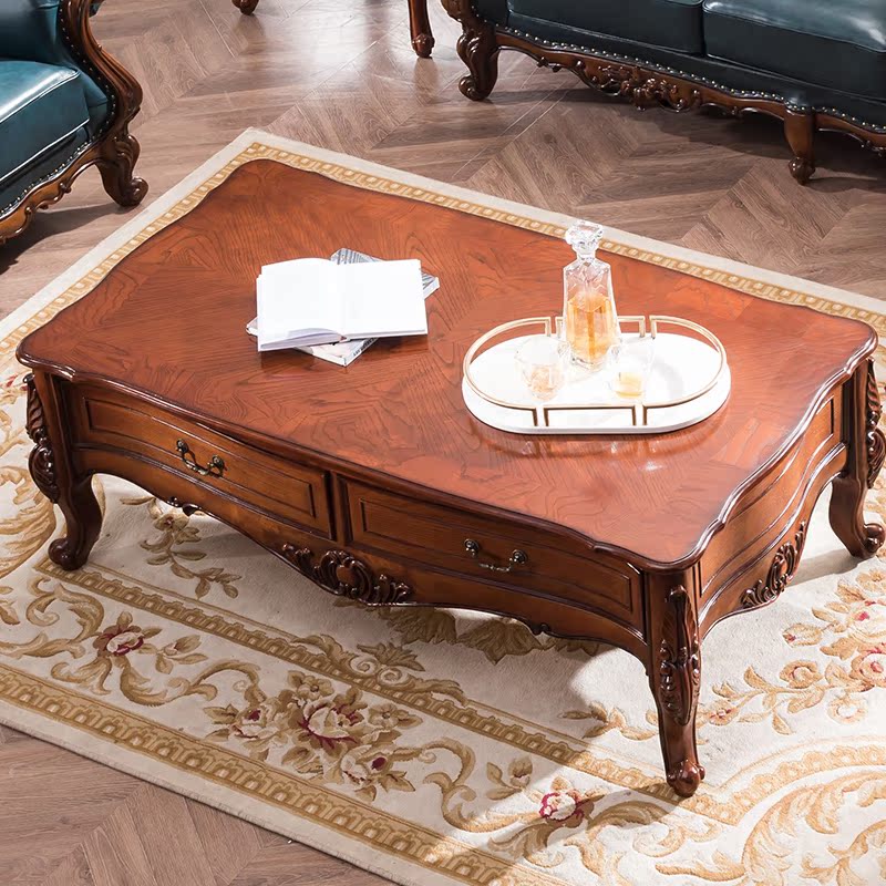 American solid wood coffee table living room low table tea table European retro solid wood with drawer storage table living room tea table
