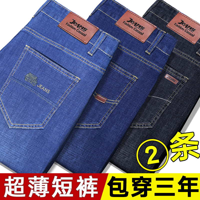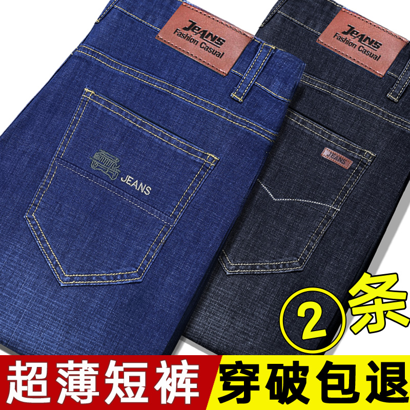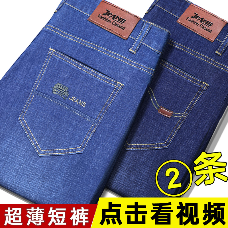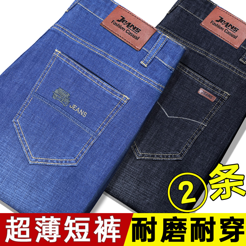 Ice silk denim shorts men's summer thin loose outer wear 5 points 5 points 5 points pants middle-aged father 7 points breeches