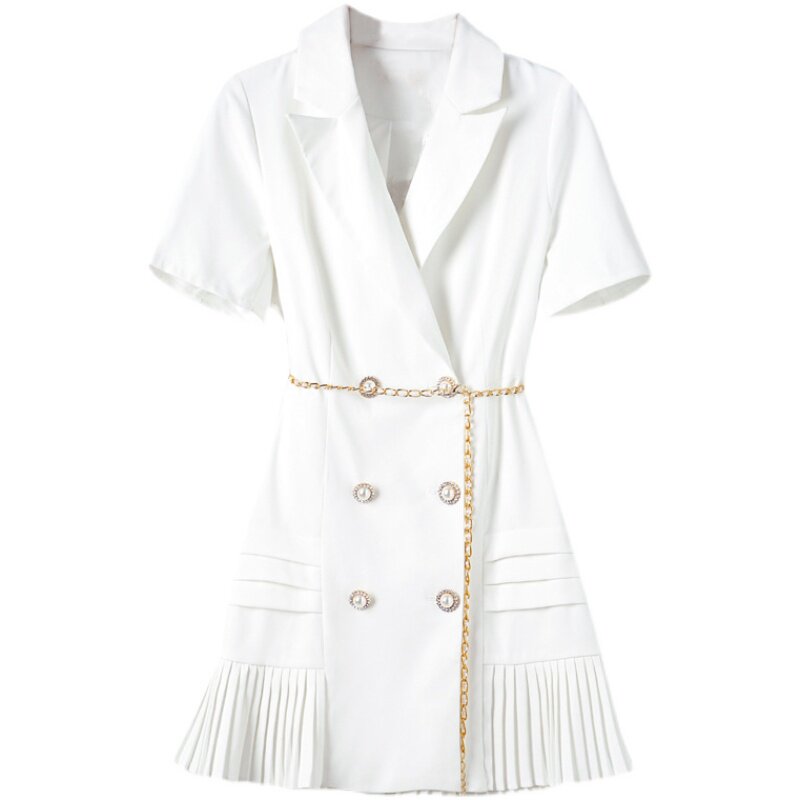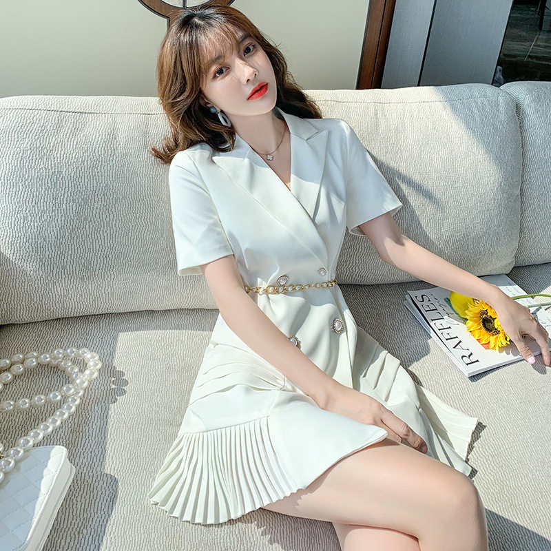 Sandro Moscoloni2022 summer new name Yuanyuan suit with OL light ripened wind goddess Fan Peppleskirt
