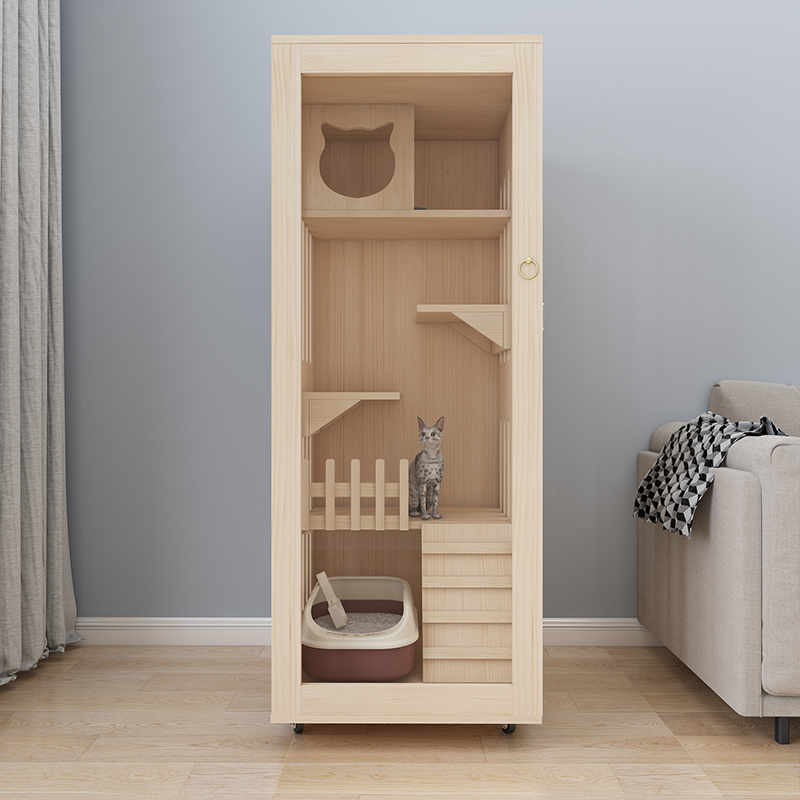 Cat cage Cat villa solid wood large cat house Wooden large luxury three-story home breeding large space cat cabinet