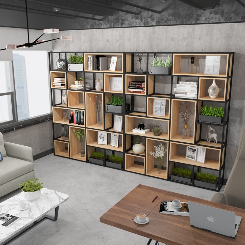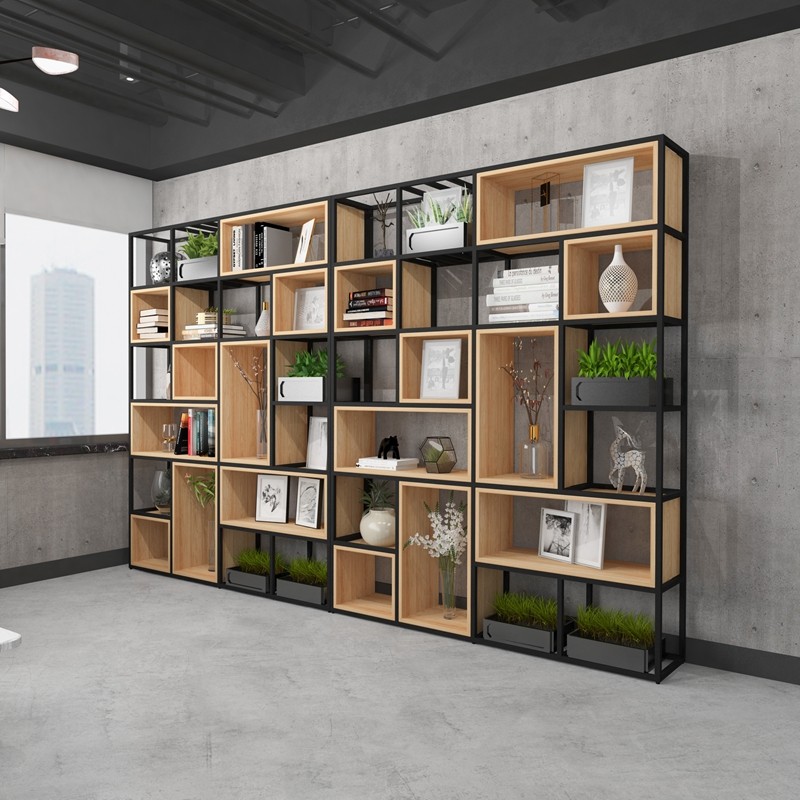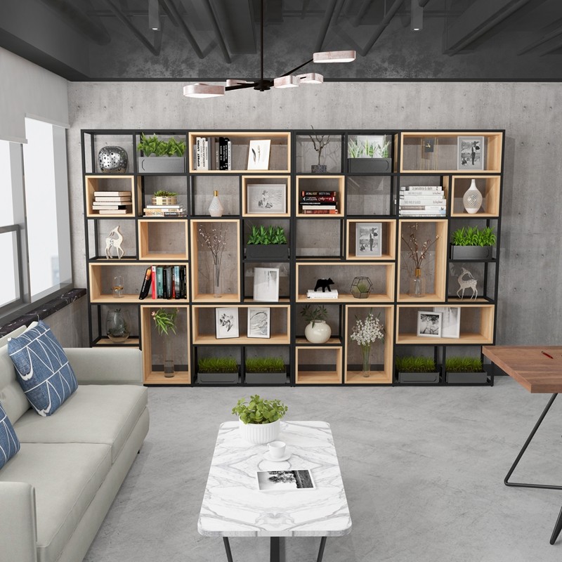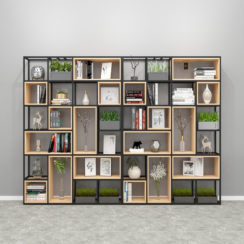 Iron Art Partition Shelf Nordic Creative Minima Living Room Dining Room Dining Room Floor Screen Bookshelf Multilayer Solid Wood Containing Layer Shelf