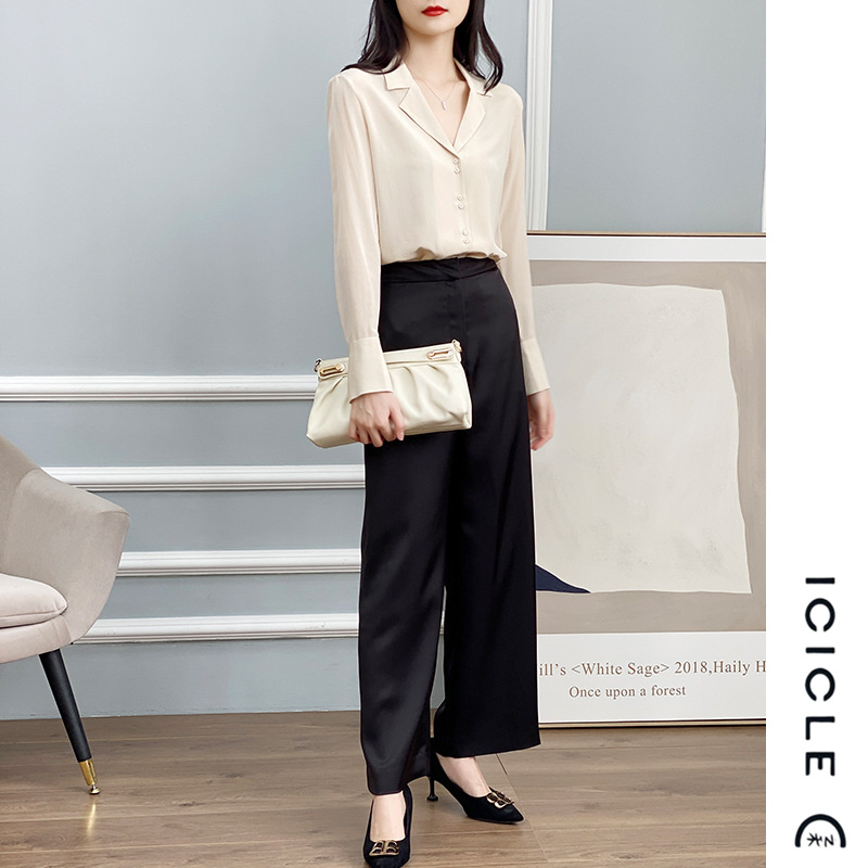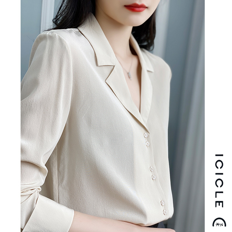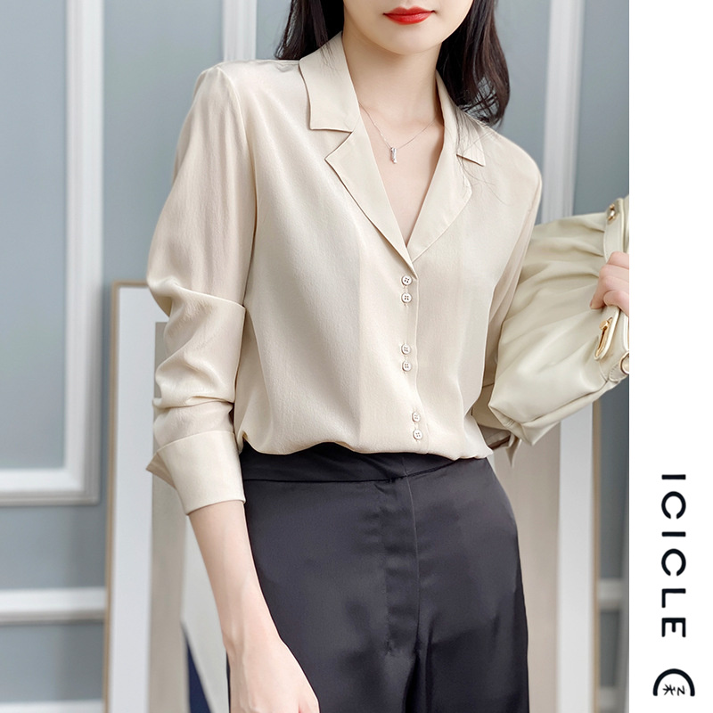 Women's 2021 spring and summer new domestic mulberry silk tops lapel collar long-sleeved silk shirts
